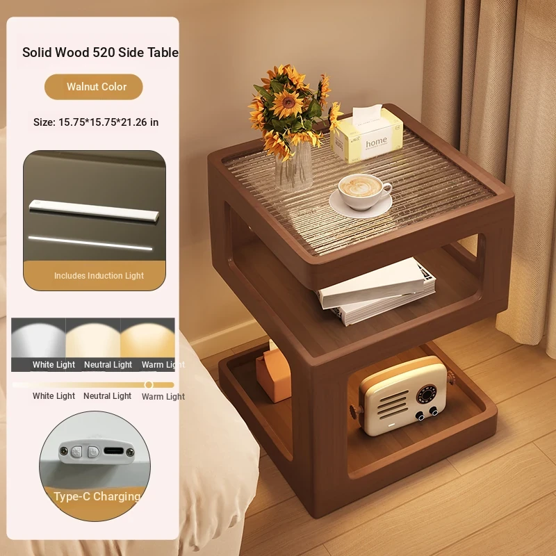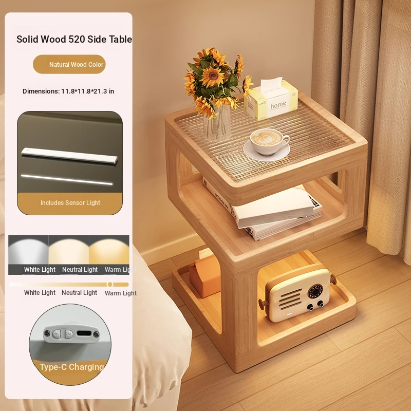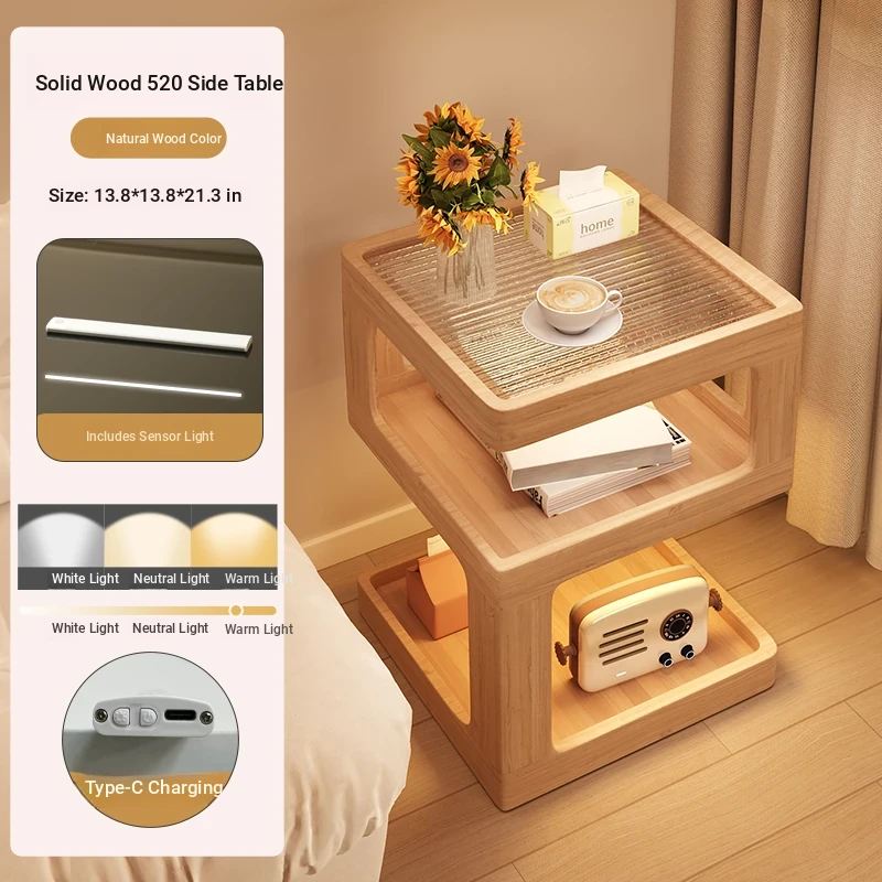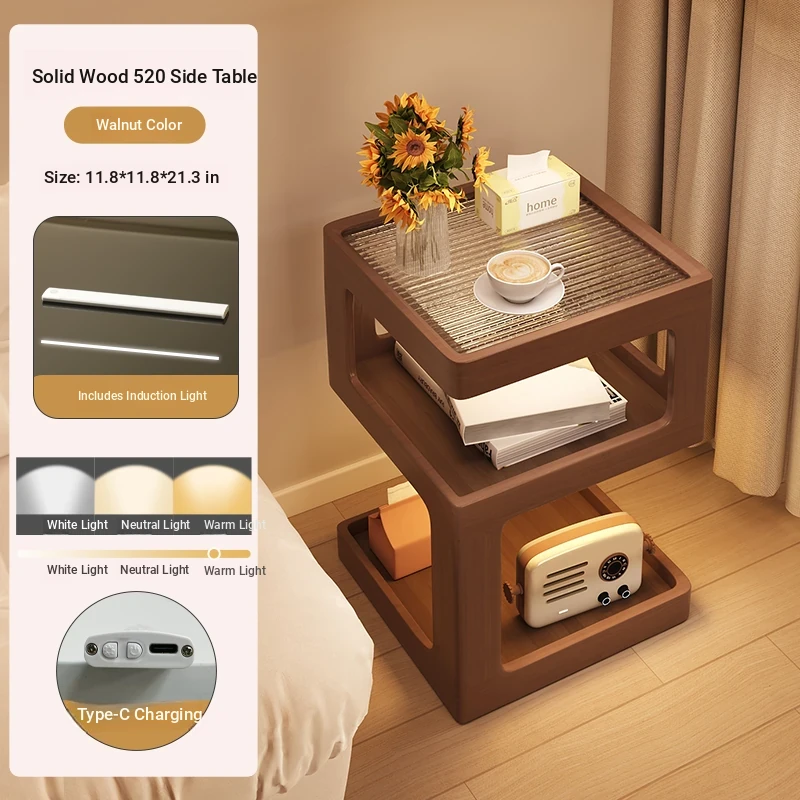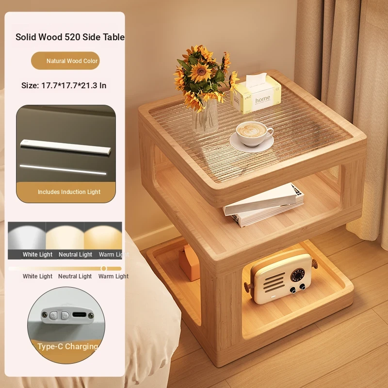 Solid Wood Minimalist Nightstand for Living Room and Bedroom – Versatile Home Side Table for Stylish Storage and Décor