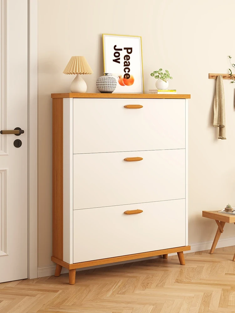 Ultra-Slim Solid Wood Shoe Cabinet - 2024 New Arrival for Home Entryway, Space-Saving Design for Narrow Interiors, Stylish and Functional Doorway Storage Solutions
